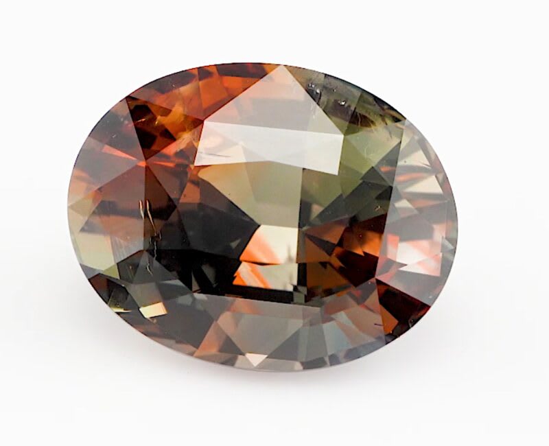 Parti sapphires are multicoloured sapphires. Normally these will show hues of green, blue and yellow, but this one is totally unique, I've never seen anything quite like it. It swims with hues of rich orange, seafoam green, pale blue and grey! Reminiscent of a lakeside forest landscape as the leaves begin to fall, you can truly get lost staring into this gem.