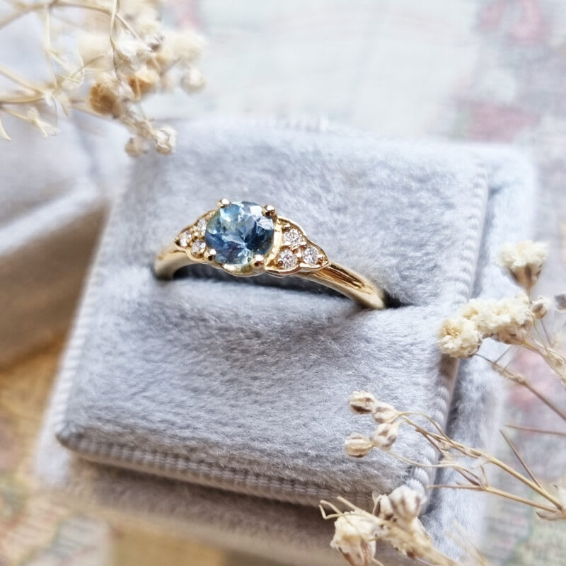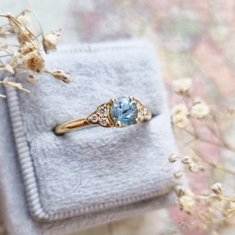 Center Aquamarine: 5 mm, VS clarity, medium-strong blue, AAAA quality