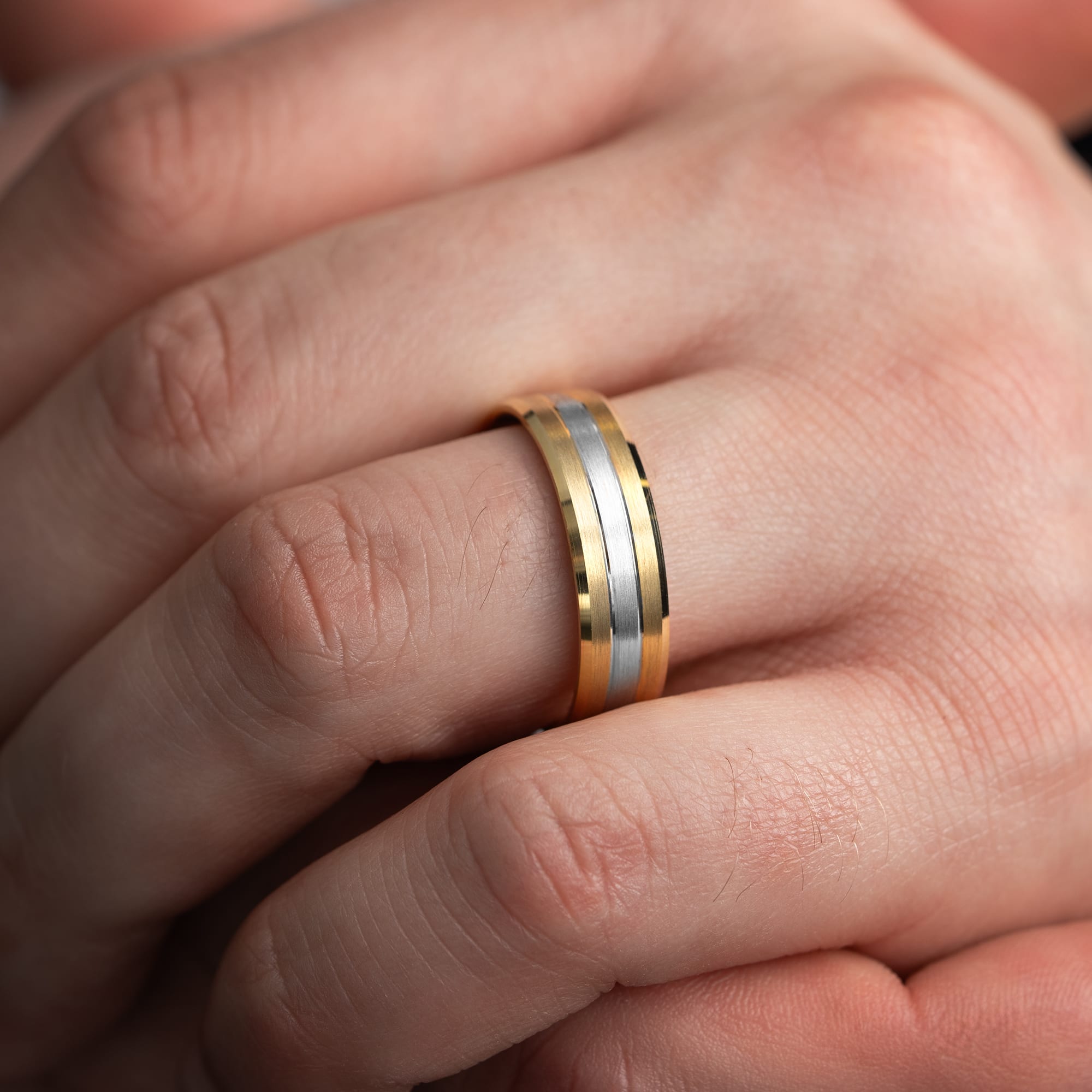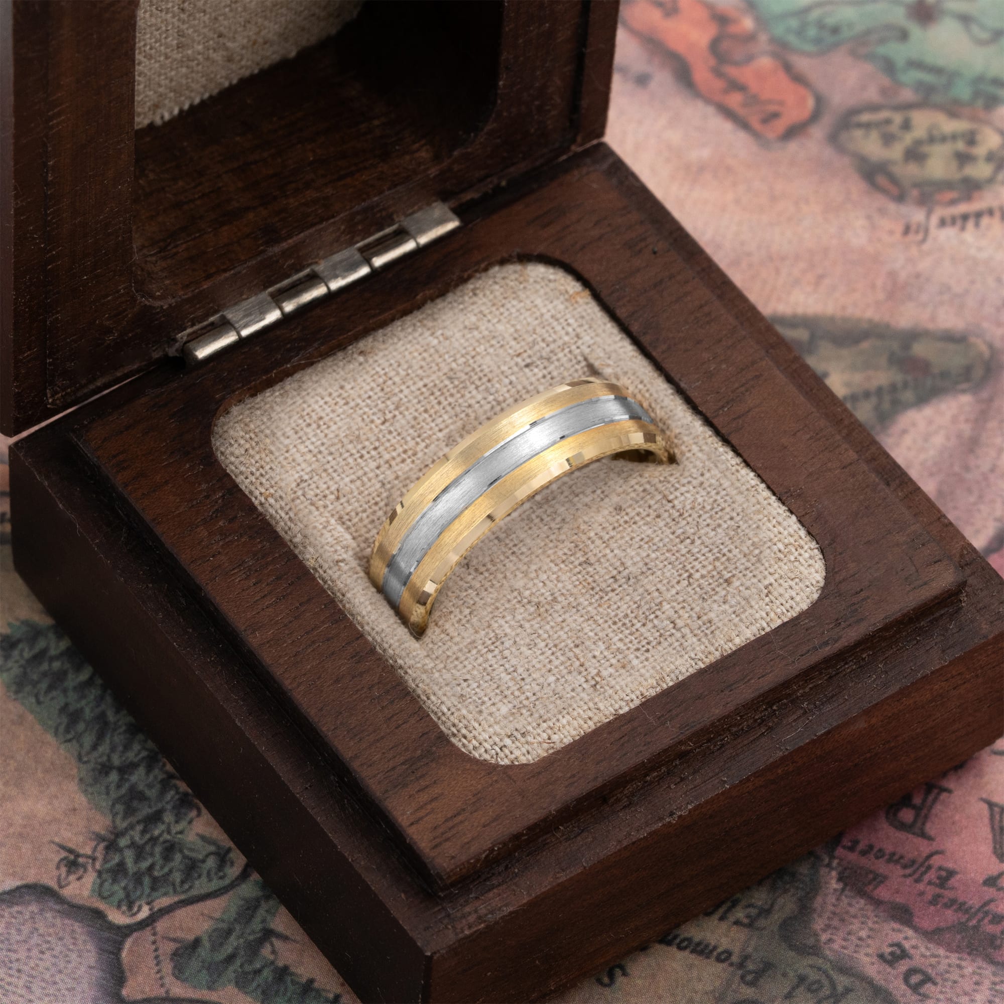 Beveled egde two tone wedding band | Aardvark Jewellery