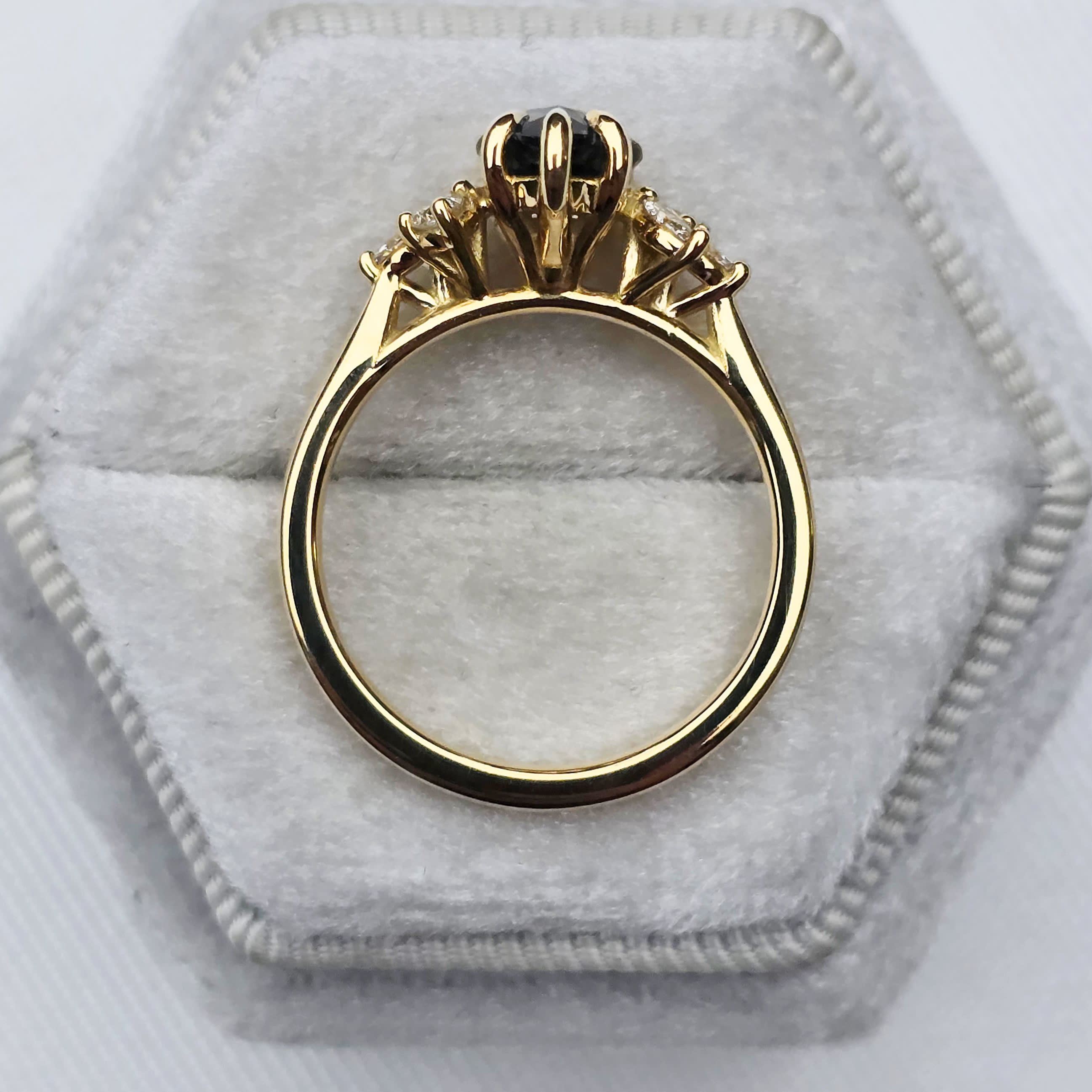 Metal Options: As this is a pre-made engagement ring, the metal is 18ct yellow gold