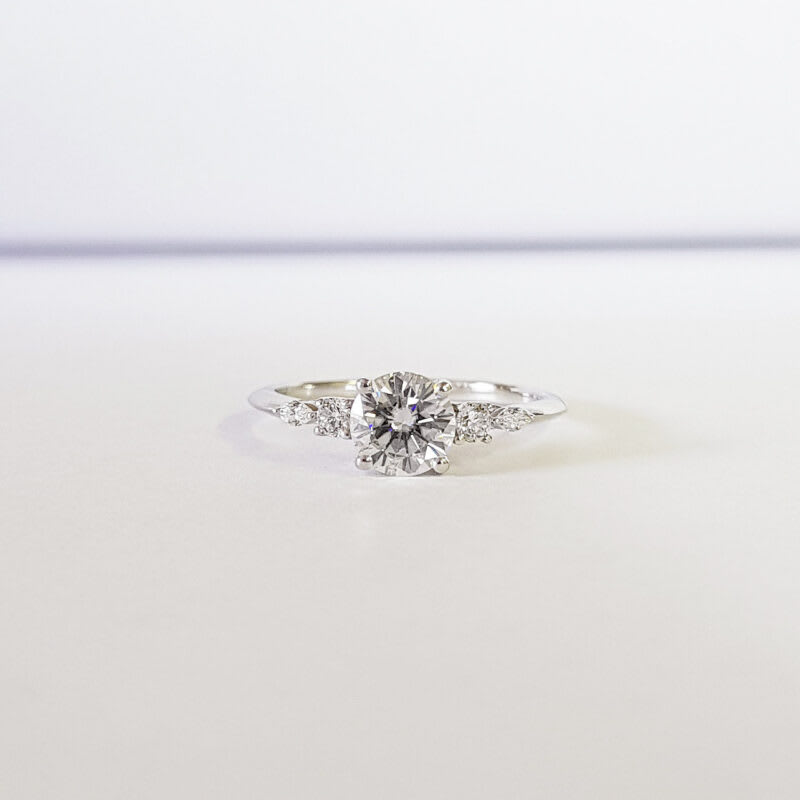Center stone: 0.8 carats, 6 mm diameter, E/F colour, VVS