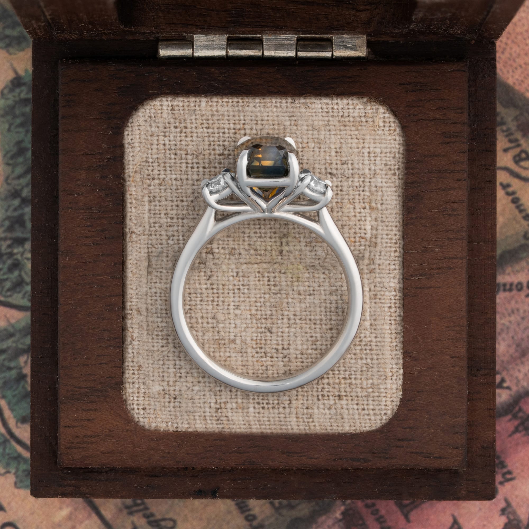 Note: This sapphire has been cut in the traditional antique fashion in order to preserve the maximum amount of the stone due to its exceptional rare colour. This means that the facets are not perfectly even and the stone shape is not even on all sides. In our opinion this only adds to the charm!