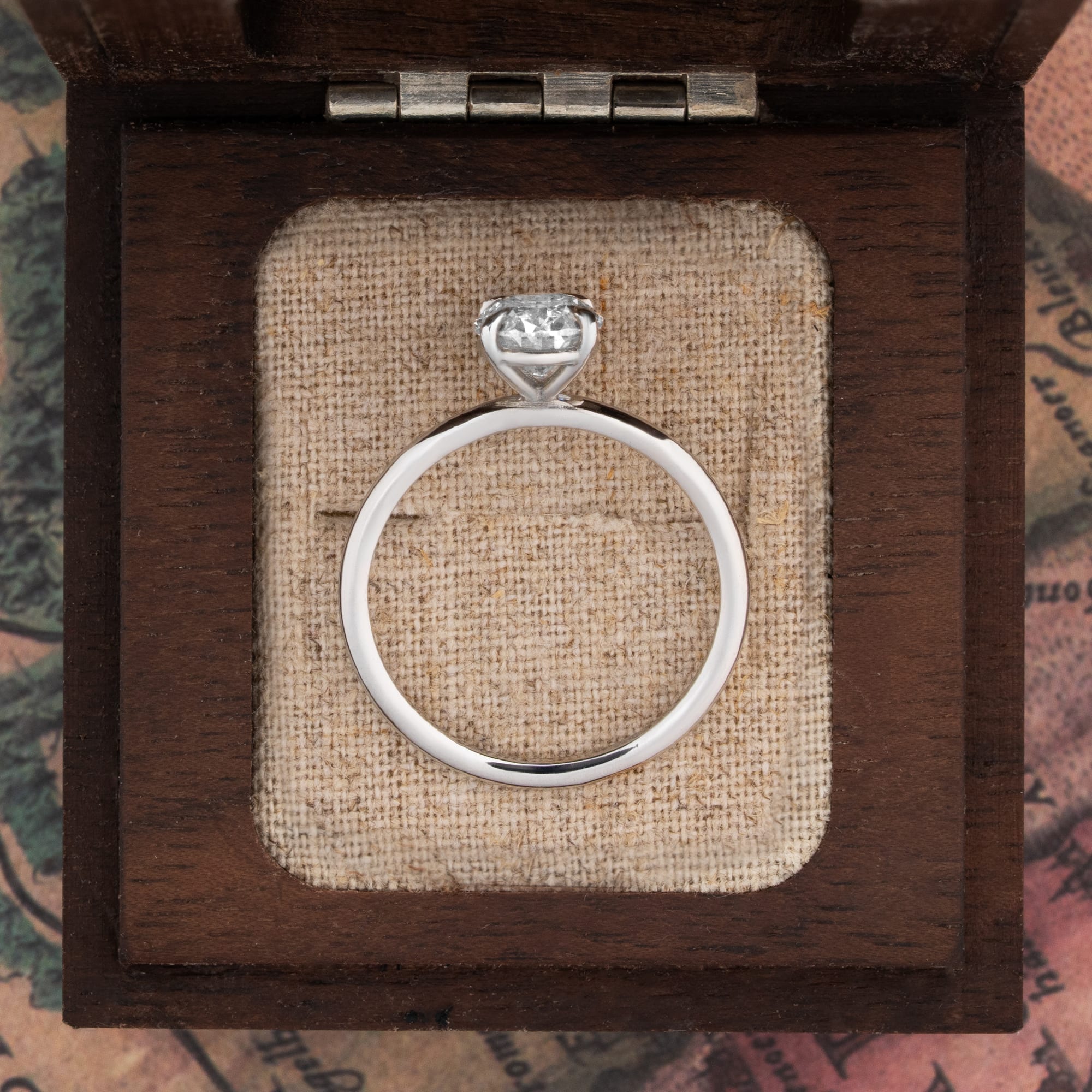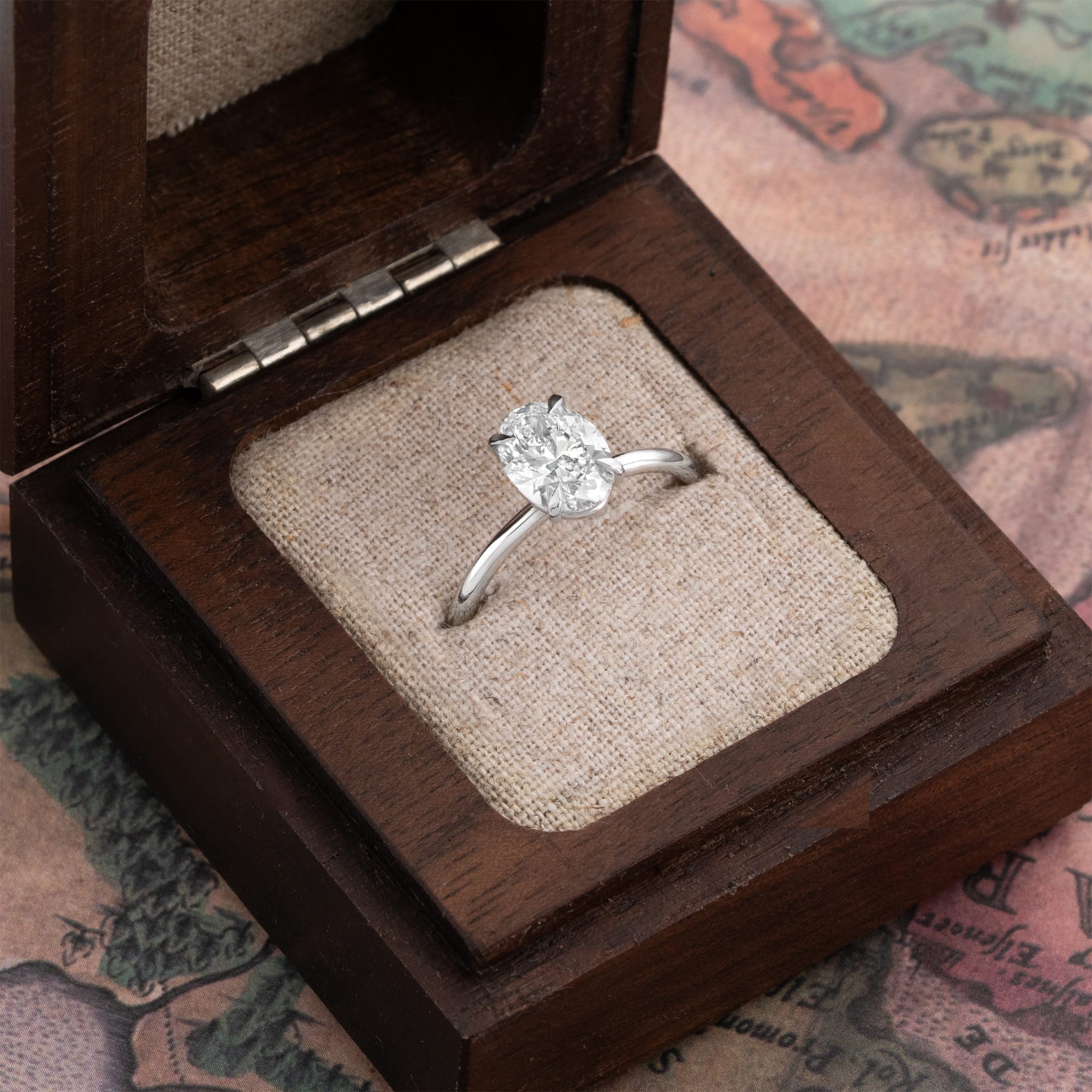 Description: This solitaire engagement ring features a 1.70ct oval-cut lab-grown diamond as the centre stone. The diamond is secured by a practical talon setting in a Platinum 950 mount. The fine jewellery piece is finished with a sleek, slim band profile measuring 1.5 mm in thickness.