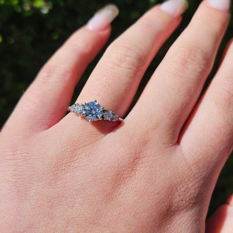 This brand new ring features a central 1 carat, D colour, VVS2 clarity lab grown round brilliant cut diamond. It has been set with matching graduated lab diamonds in a classic 5 stone platinum mount!