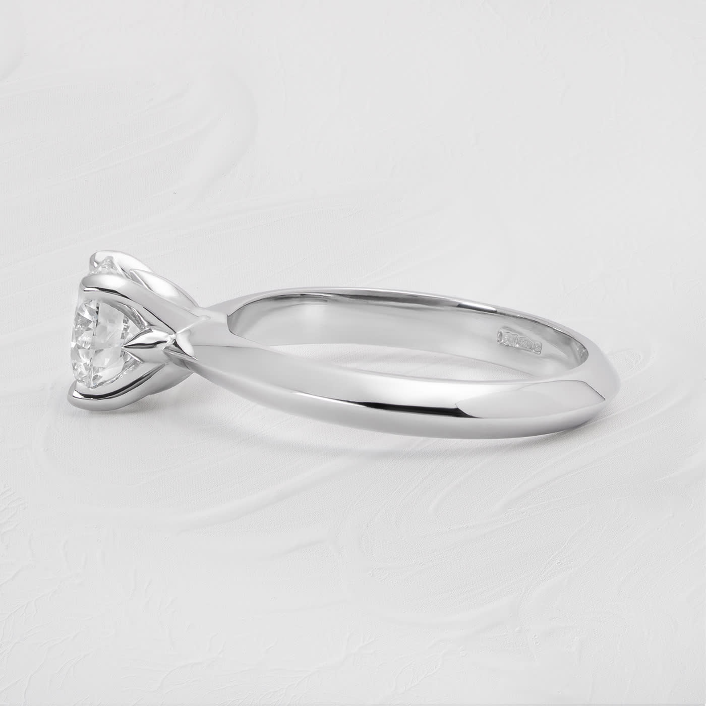 This gorgeous new ring features a central 1.5ct round lab grown diamond, set in a knife edge mount with 4 prongs in platinum.