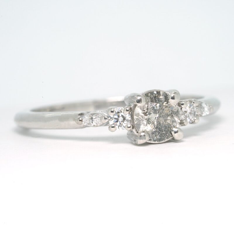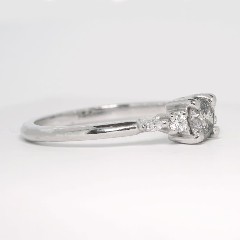 This brand new stunning ring features a central brilliant cut salt and pepper diamond, set with 4 marquise and round shape diamonds in a petite style mount!