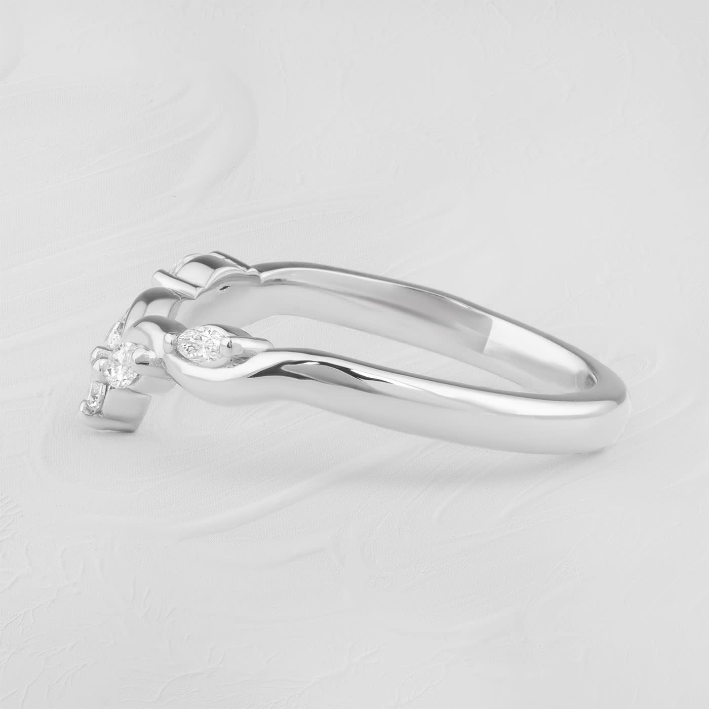This gorgeous curved wedding band features a mixture of round and marquise lab grown diamonds, pictured in platinum.