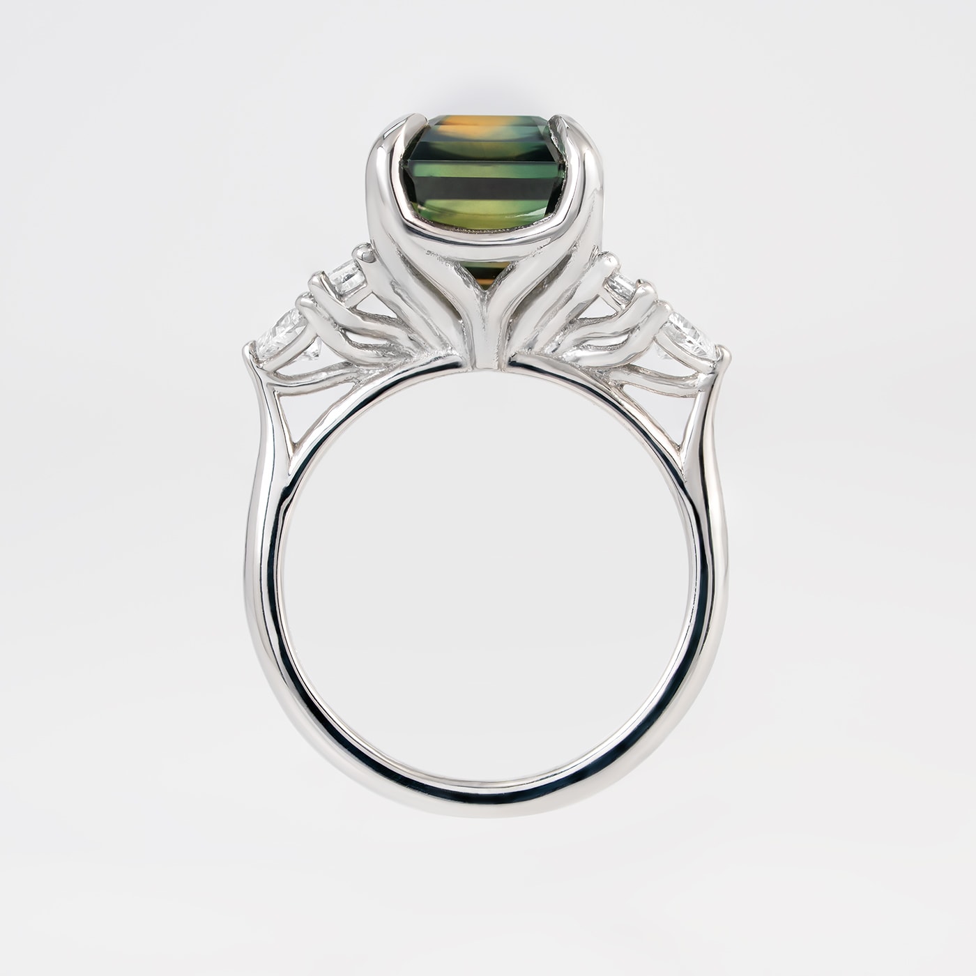 An 8.05ct, one of a kind, unheated octagonal piece, that displays hues of blue, green, orange and yellow hues, all the way from Madagascar.