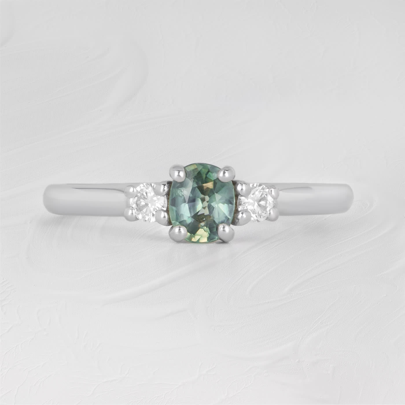 £1,699.00Seafoam green sapphire and diamond engagement ring